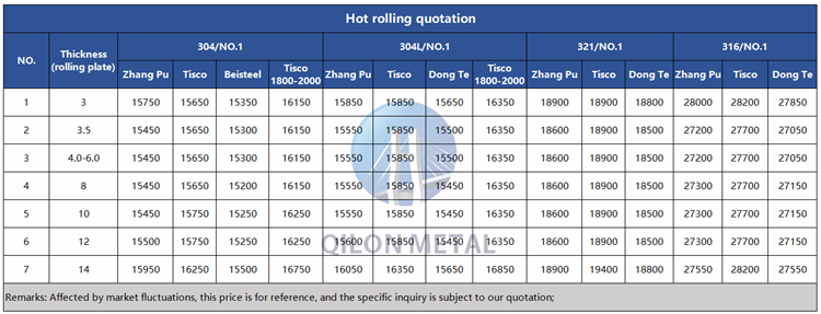 Quotation for hot rolled stainless steel 2023.6.15