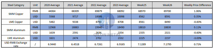 SMM Copper and Aluminum weekly price on the week 25th, 2023