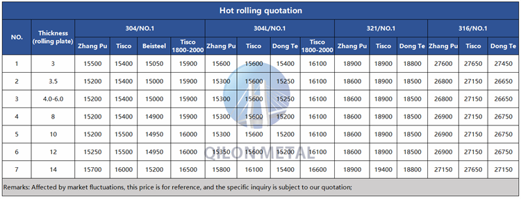 Quotation for hot rolled stainless steel 2023.6.27