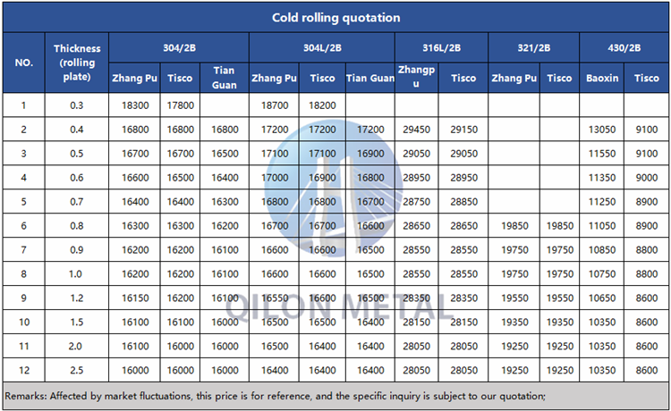 Quotation for cold rolled stainless steel 2023.6.28