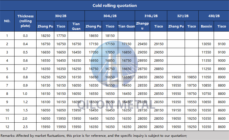 Quotation for cold rolled stainless steel 2023.7.3