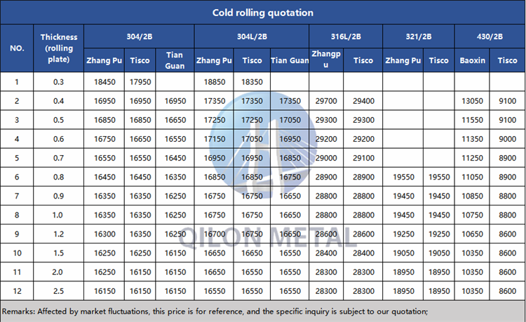 Quotation for cold rolled stainless steel 2023.7.31