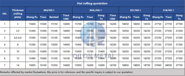 Quotation for hot rolled stainless steel 2023.7.31