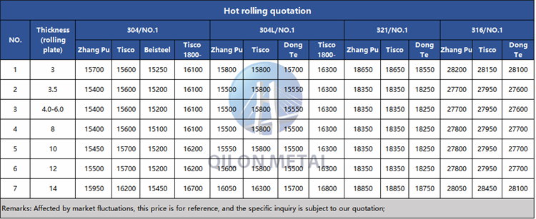Quotation for hot rolled stainless steel 2023.8.7