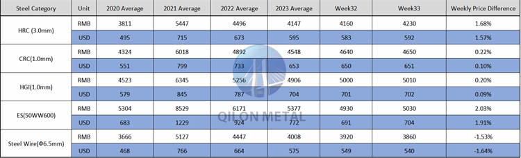 Carbon Steel price on the week 32th, 2023