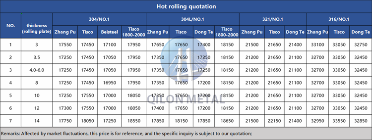 Quotation for hot rolled stainless steel 2023.3.7