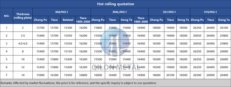 Quotation for hot rolled stainless steel 2023.4.14