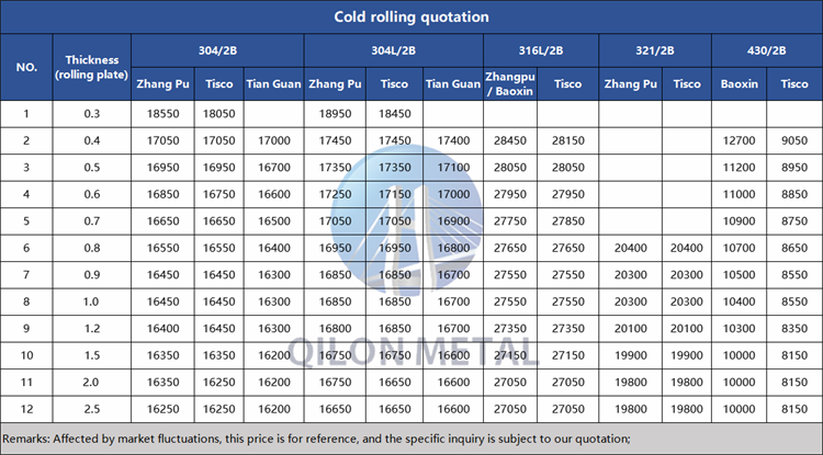 Quotation for cold rolled stainless steel 2023.4.14