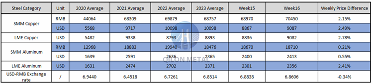 SMM Copper and Aluminum weekly price on the week 16th, 2023