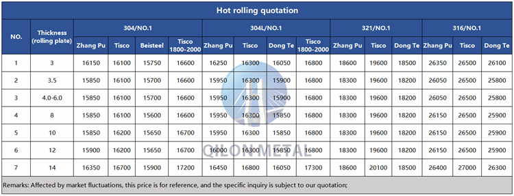 Quotation for hot rolled stainless steel 2023.4.20