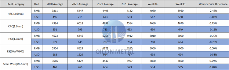 Carbon Steel price on the week 34th, 2023