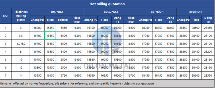 Quotation for hot rolled stainless steel 2023.8.31