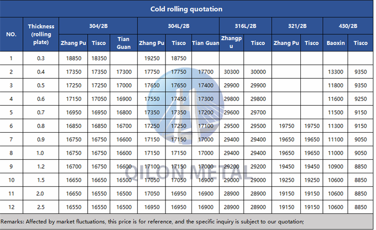 Quotation for cold rolled stainless steel 2023.8.31
