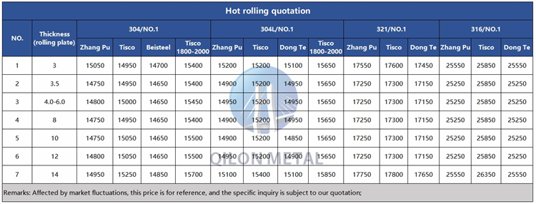 Quotation for hot rolled stainless steel 2023.11.10