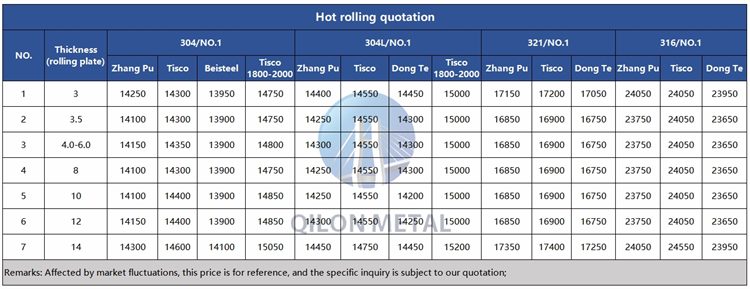 Quotation for hot rolled stainless steel 2023.11.21