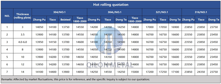 Quotation for hot rolled stainless steel 2023.11.25
