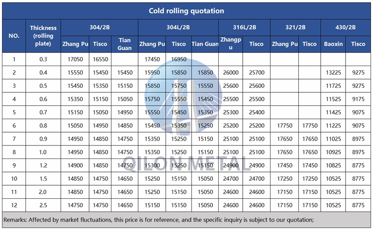 Quotation for cold rolled stainless steel 2023.11.28
