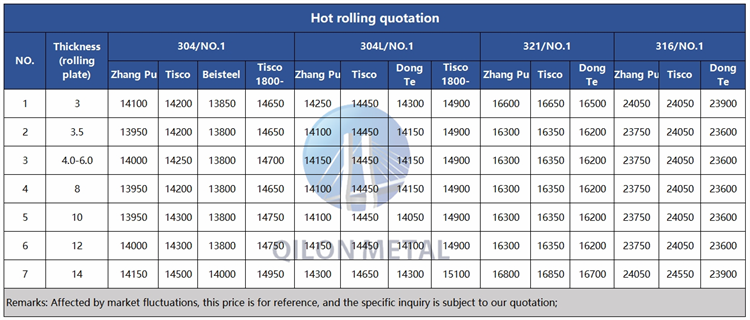 Quotation for hot rolled stainless steel 2023.11.30