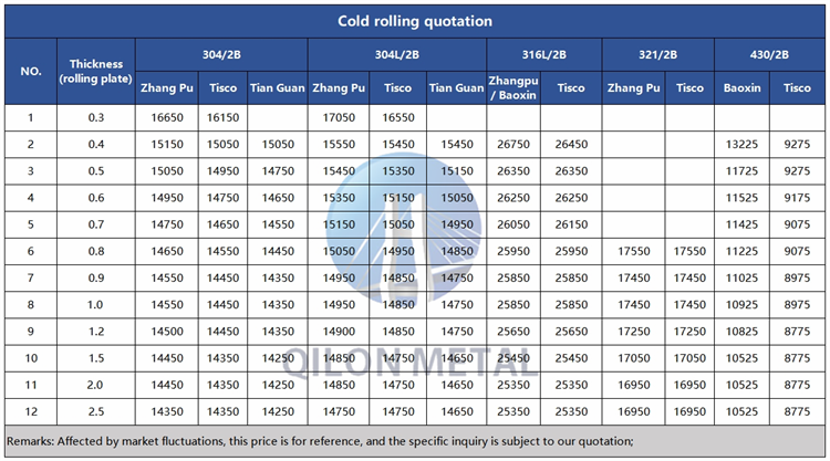 Quotation for cold rolled stainless steel 2023.12.11