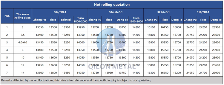 Quotation for hot rolled stainless steel 2023.12.13