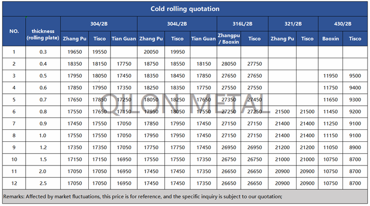 Quotation for cold rolled stainless steel 2022.9.1