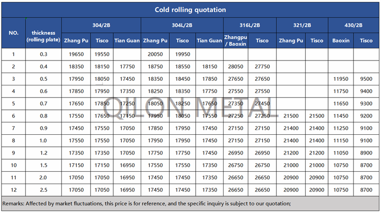 Quotation for cold rolled stainless steel 2022.9.2