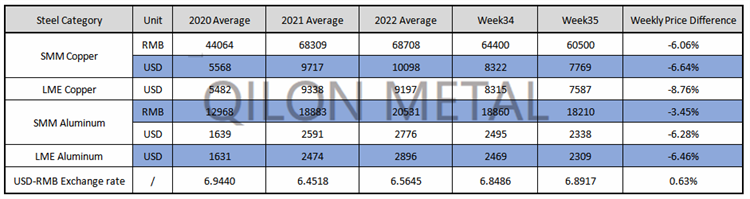 SMM Copper and Aluminum weekly price on the week 35th, 2022