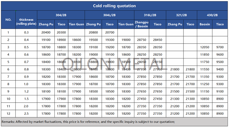 Quotation for cold rolled stainless steel 2022.9.13