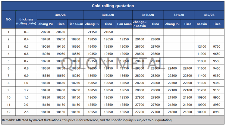 Quotation for cold rolled stainless steel 2022.9.14