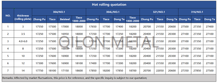 Quotation for hot rolled stainless steel 2022.9.22