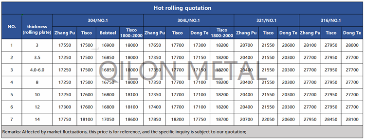 Quotation for hot rolled stainless steel 2022.9.28
