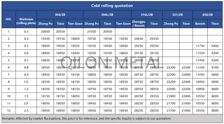 Quotation for cold rolled stainless steel 2022.10.8