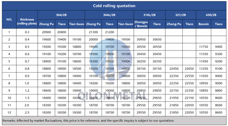 Quotation for cold rolled stainless steel 2022.10.18