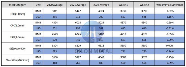 Carbon Steel price on the week 42th, 2022