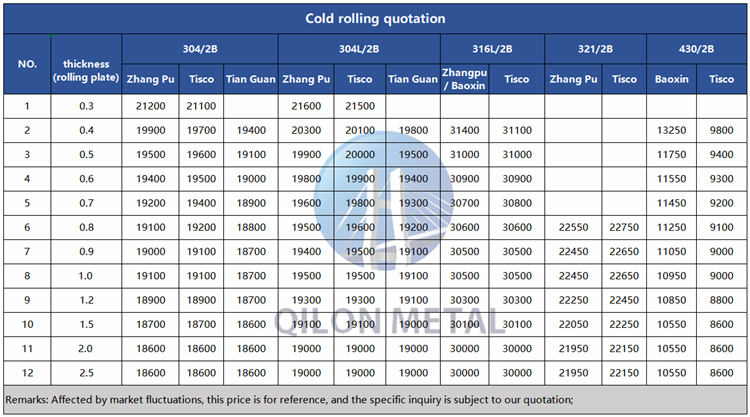 Quotation for cold rolled stainless steel 2022.10.25