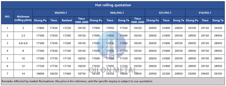 Quotation for hot rolled stainless steel 2022.11.1
