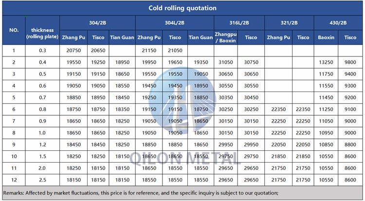 Quotation for cold rolled stainless steel 2022.11.4