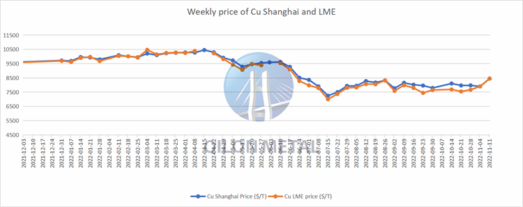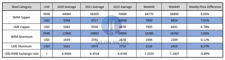 SMM Copper and Aluminum weekly price on the week 45th, 2022