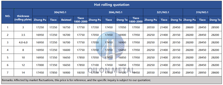 Quotation for hot rolled stainless steel 2022.11.20