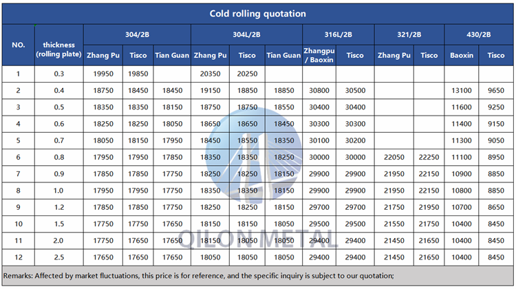 Quotation for cold rolled stainless steel 2022.11.20