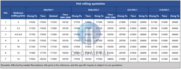 Quotation for hot rolled stainless steel 2023.1.4
