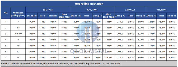 Quotation for hot rolled stainless steel 2023.1.28