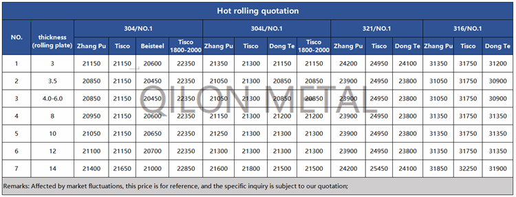 Quotation for hot rolled stainless steel 2022.5.7