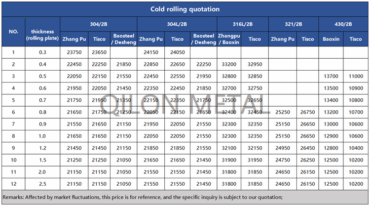 Quotation for cold rolled stainless steel 2022.5.10