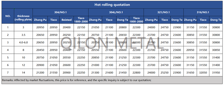 Quotation for hot rolled stainless steel 2022.5.10