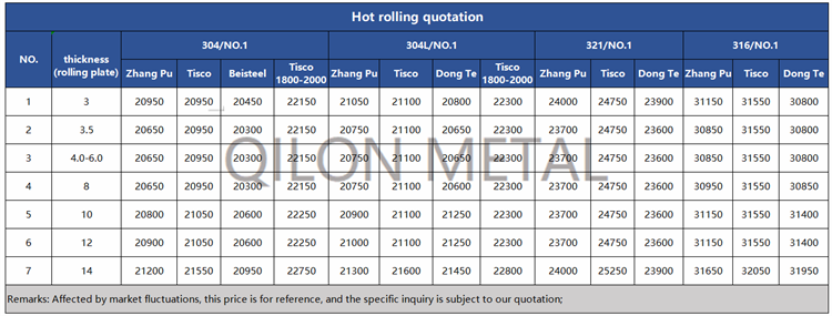 Quotation for hot rolled stainless steel 2022.5.11