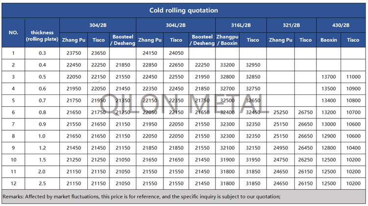 Quotation for cold rolled stainless steel 2022.5.11