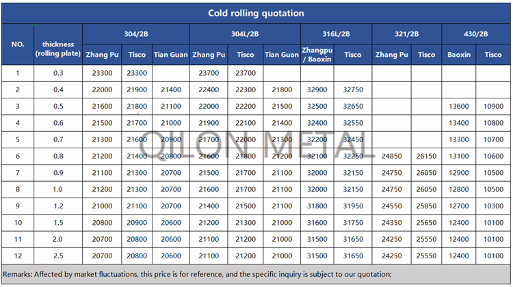 Quotation for cold rolled stainless steel 2022.5.23