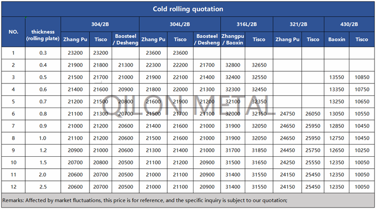 Quotation for cold rolled stainless steel 2022.5.24