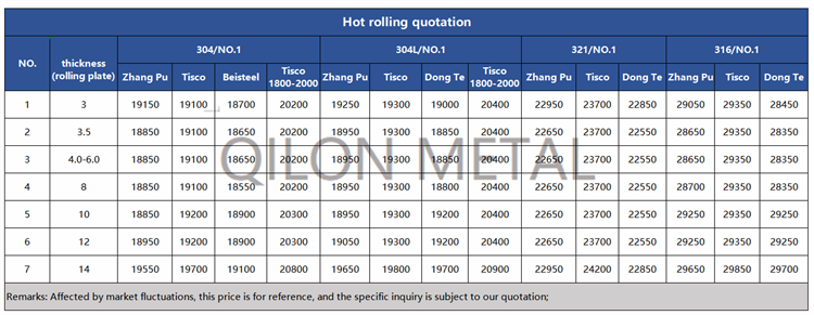 Quotation for hot rolled stainless steel 2022.6.21